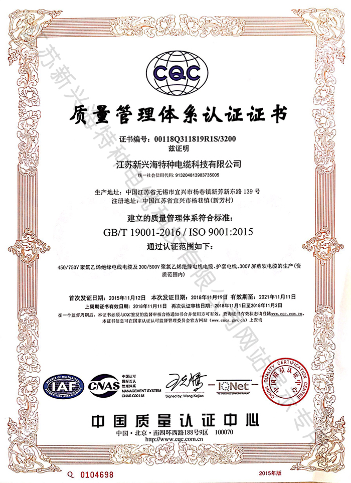 質(zhì)量體系管理證書-江蘇新興海